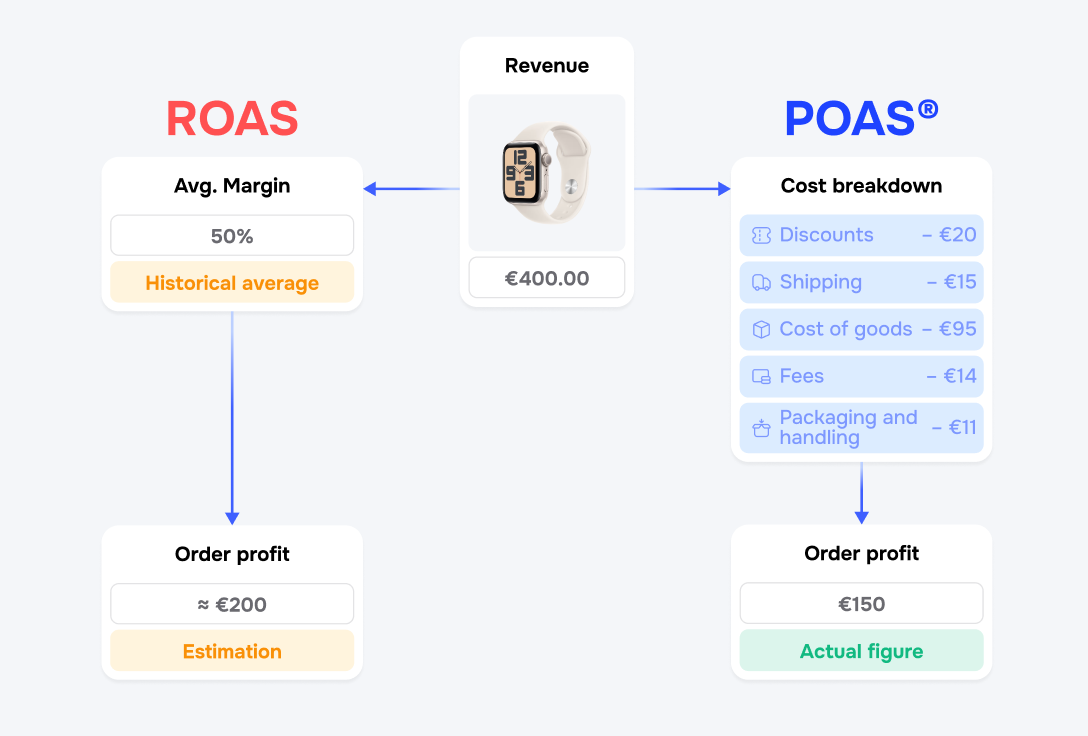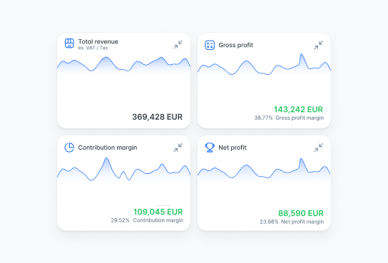 With ProfitMetrics, you simply need to add an extra column to the individual systems you’re using. As a result, you will still be able to see your revenue, the number of conversions, and ROAS based on revenue, as you might already be accustomed to.